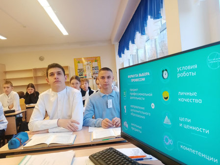 23 октября прошли профориентационные занятия в рамках курса «Россия — мои горизонты» и проекта «Билет в будущее». Уроки прошли на две темы: «Формула выбора профессии» и «Аграрная среда». В ходе обсуждения обучающиеся узнали новую информацию о профессиях из аграрной сферы; узнали, как применять формулу выбора профессии на практике и как эта формула помогает разобраться в своих интересах и целях, провели анализ перспективных специальностей на современном рынке труда и выполнили несколько практических заданий.