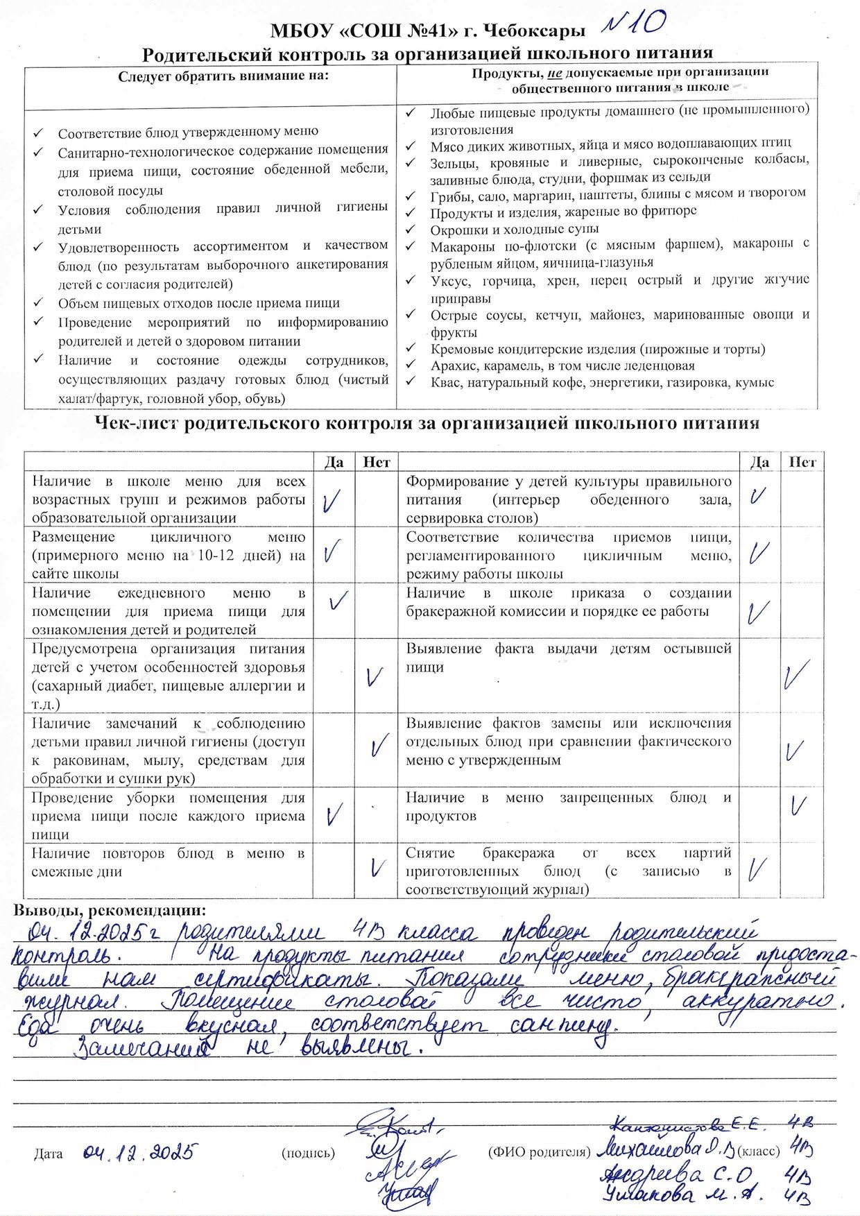 24.10.2023 Родительский контроль питания 24 октября. 1Б класс