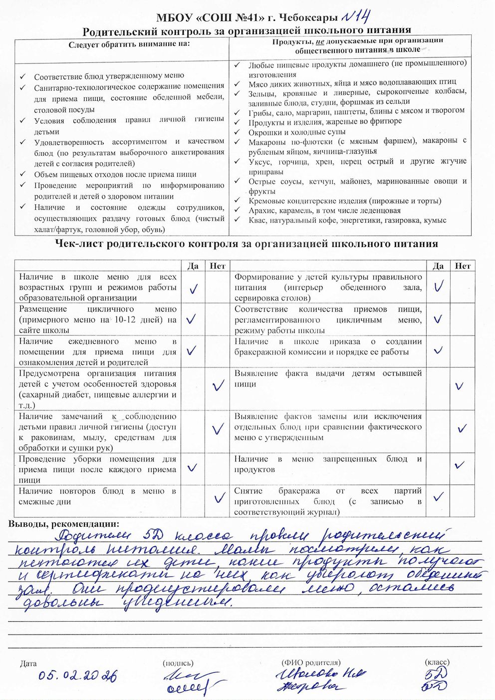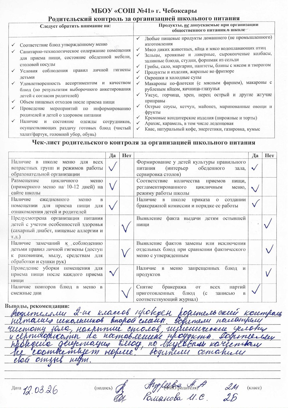 22.11.2023 Родительский контроль питания 22 ноября. 1В класс