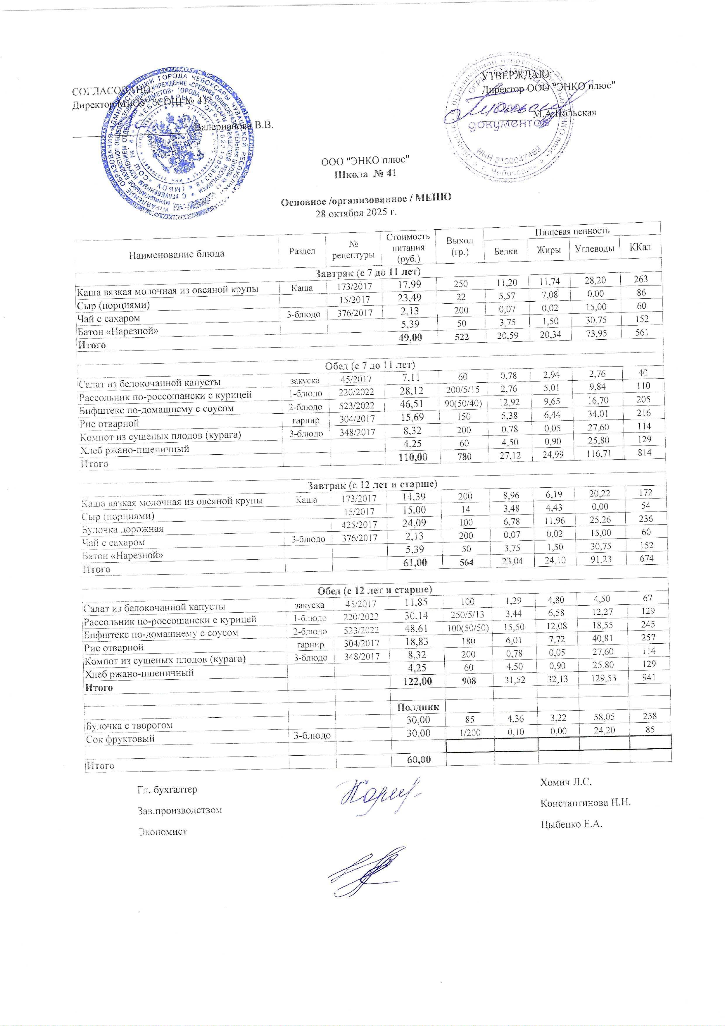 - - Основное (организованное двухнедельное меню) для обучающихся общеобразовательных учреждений города Чебоксары, для возрастной категории 7—11 лет