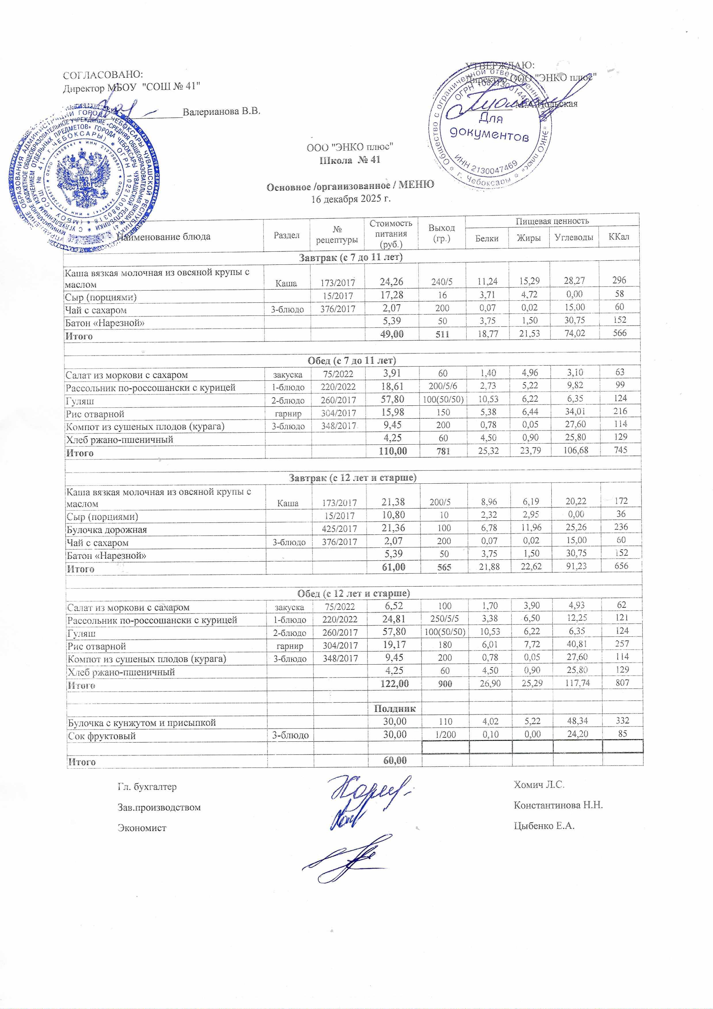 - Основное (организованное двухнедельное меню) для обучающихся общеобразовательных учреждений города Чебоксары для возрастной категории с 12 лет и старше