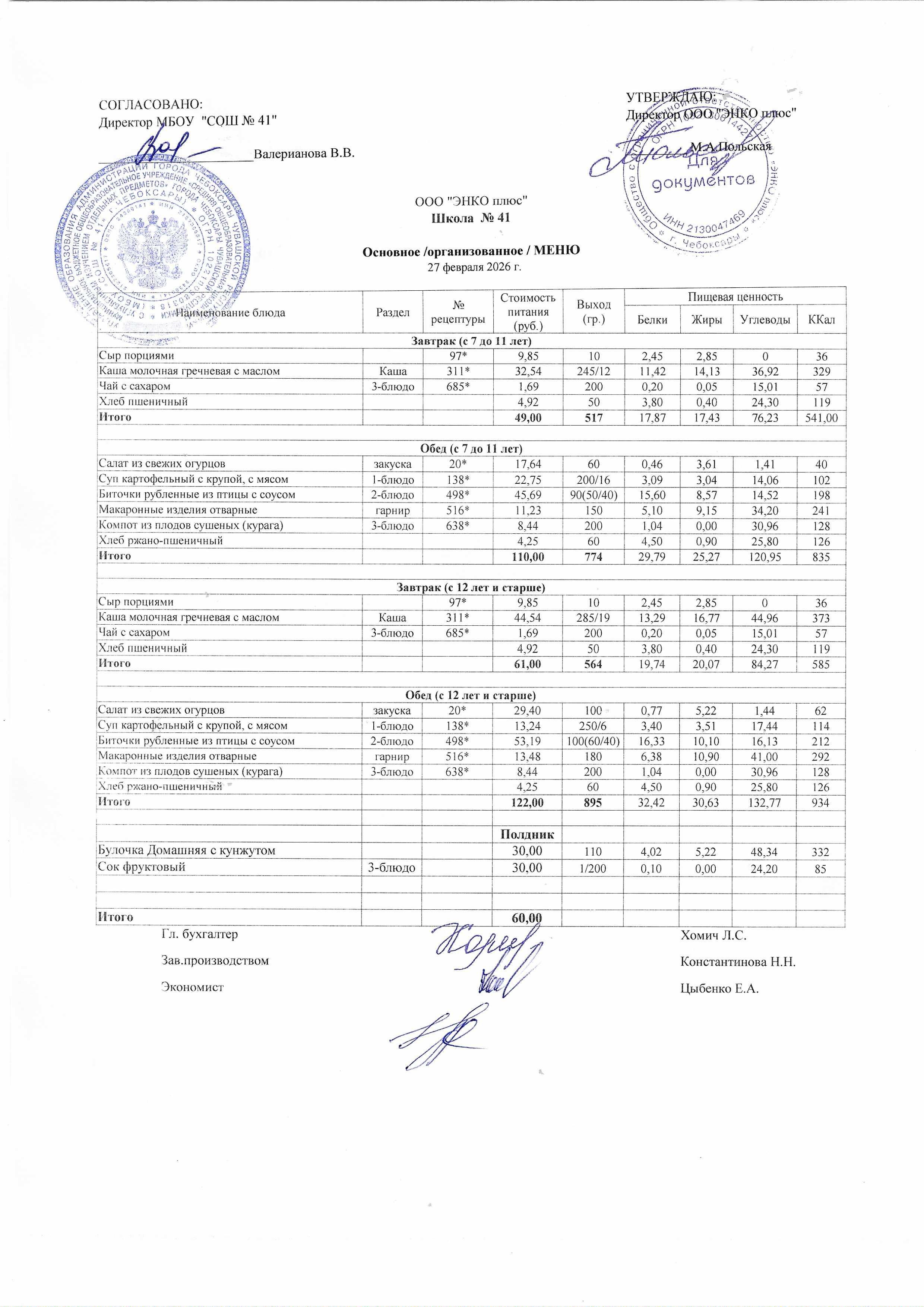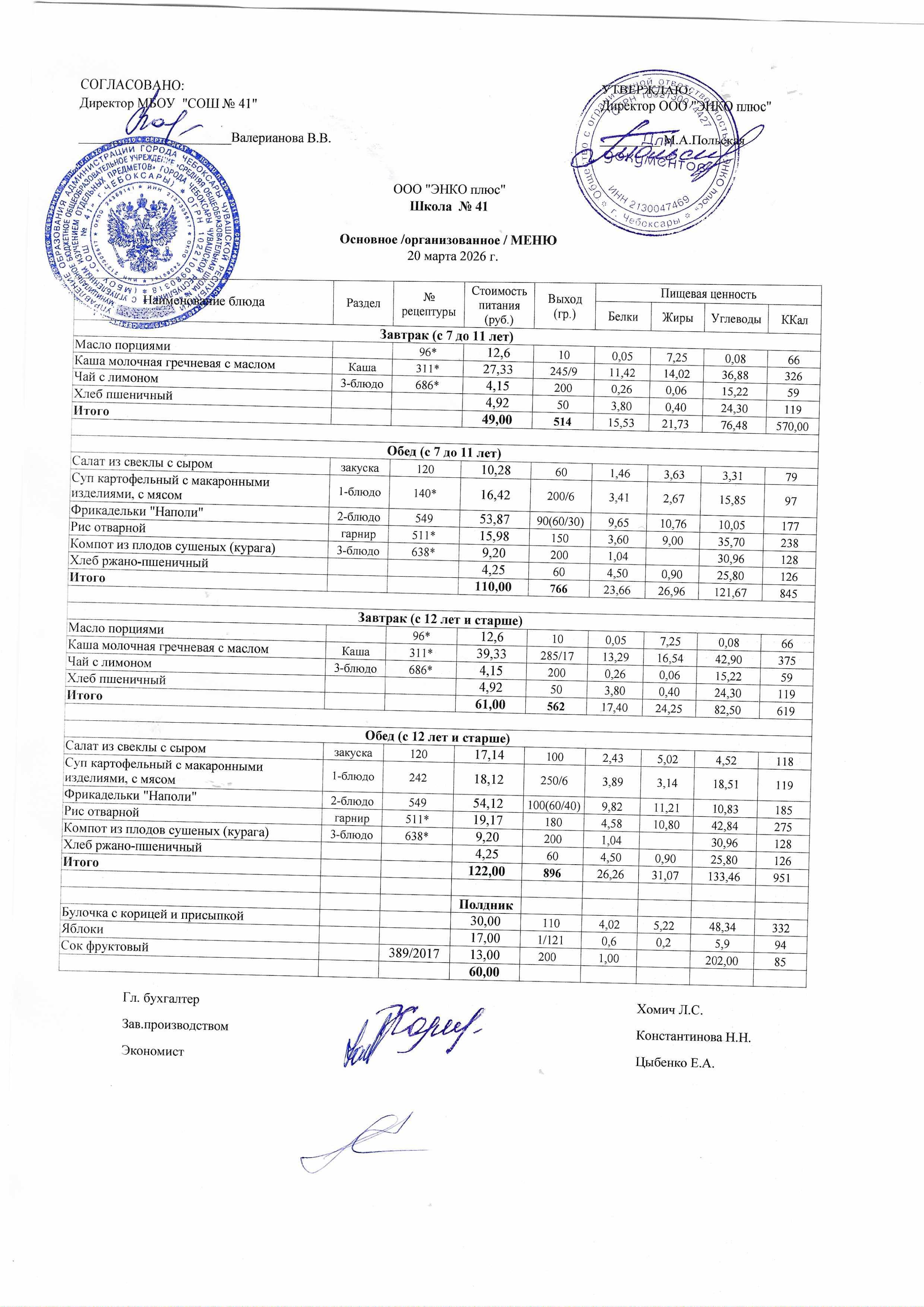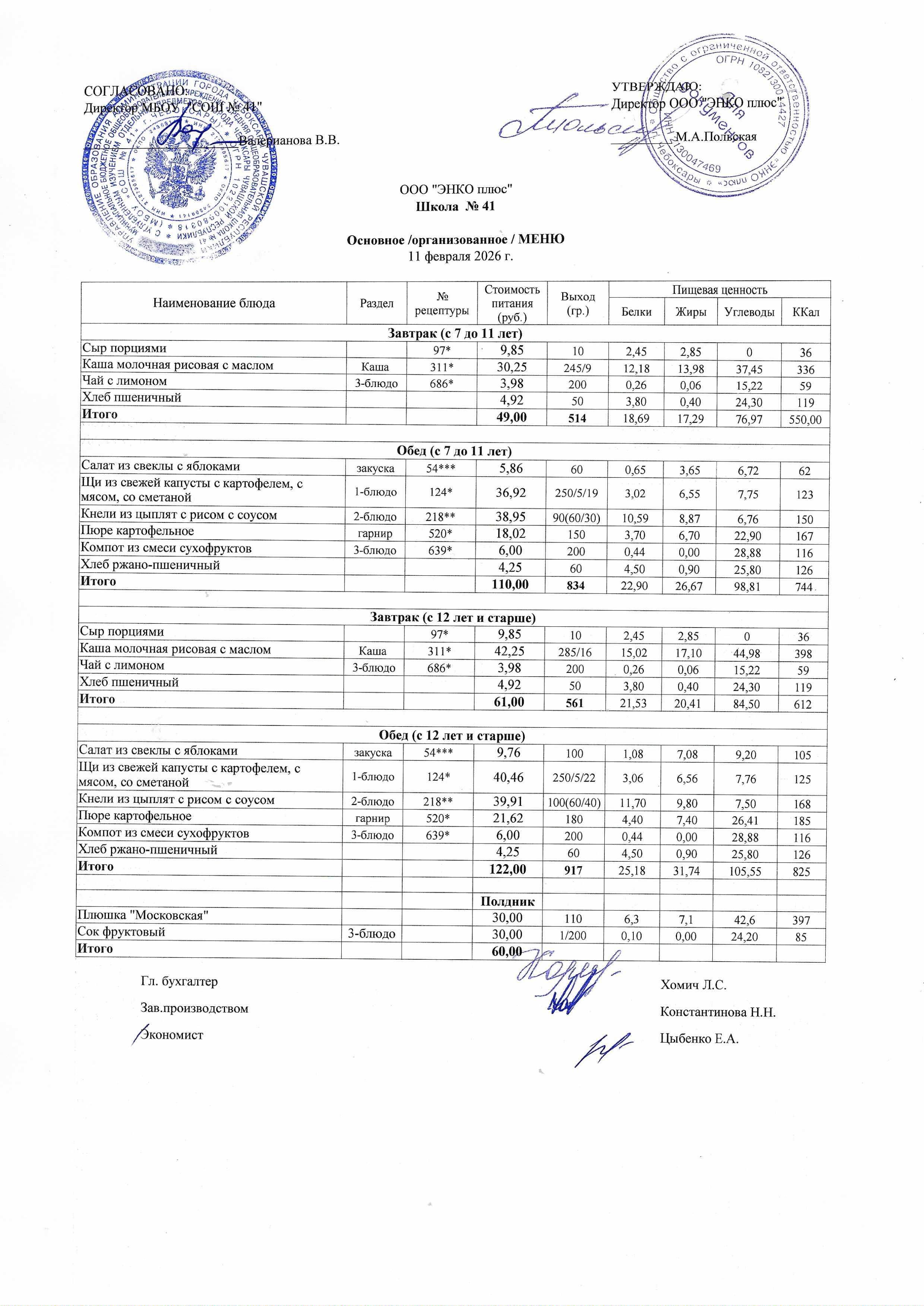 Комбинат питания предоставляющий услуги горячего питания в школе ООО «ЭНКО плюс»Перечни юридических лиц и индивидуальных предпринимателей, поставляющих (реализующих) пищевые продукты и продовольственное сырье в образовательную организацию