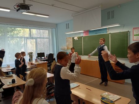 30 сентября для четвероклассников проведи зарядку сразу два спортсмена. Качимов Роман (тайский бокс) и Петров Антон (хоккеист) рассказали, как каждый занимается в своем виде спорта и выполнили вместе со всеми ребятами несколько физических упражнений.