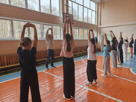 29 октября спортивные занятия для воспитанников школьного спортивного клуба «Победа» начались с зарядки. Провел ее актер, руководитель кукольного направления и художник-постановщик «Май-театра» Тауркин Евгений Николаевич.