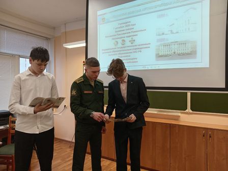 6 ноября в старших классов прошел Урок мужества на тему «Есть такая профессия — Родину защищать!». Провёл его Кононов Руслан Юрьевич — курсант Михайловской военно-артиллерийской академии г. Санкт-Петербург. Он рассказал ребятам не только о понятии «мужество», а также как можно поступить в военное училище и где можно работать с данным образованием. От старшеклассников поступали вопросы о правилах приёма в академию, на которые они получили ответы.