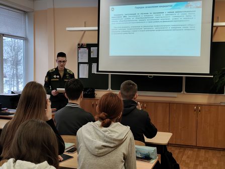 2 марта, в 11А классе, прошёл Урок Мужества с курсантом Нижегородского гвардейского высшего военного-инженерного командного ковельского краснознамённого училища Васильковым Романом Александровичем. Он рассказал ребятам о подвиге и отваге. А также поделился, как можно поступить в военное училище и где можно работать с данным образованием.